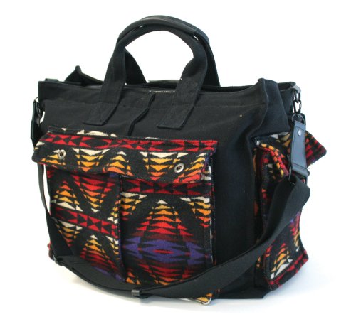 Our pecos jacquard sets this overnight bag apart from the sea of other black canvas bags on the move, the pecos pattern reflects the artistic heritage of two ancient peoples of the american southwest, generations ago, the village of pecos controlled the trade path between the native american farmers of the rio grande in the south and the tribes of plains buffalo hunters to the north, pecos pueblo residents became economically powerful and accomplished in the arts and customs of the two worlds, today, the ruins of pecos pueblo sit on a small ridge in the pecos river valley, classic diamonds are symbols from both cultures, two bellows snap pockets outside, three zippered pockets inside, 100 percentage pure virgin wool jacquard is woven in our northwest mill, back and bottom are sturdy canvas, removable, adjustable shoulder strap, padded handles, pattern placement varies, imported of usa fabric, 16½ inch h x 19 inch w x 9 inch d.