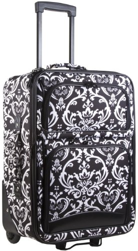 Don't get lost in a sea of black luggage at the airport! Stand out in style with this black and white damask floral print print with black trim boarding case! This piece of lightweight luggage is great for jet setters and can be used for a quick, close by overnight staycation or for a weekend excursion to your favorite retreat. Its chic and fashionable design makes it a perfect choice for transporting gear for dance teams and cheer squads too! Easily glide through the TSA security checkpoint on inline skate wheels with your rolling suitcase for stress-free and efficient, stylish transport. This cute carry on features an interior zip compartment and elastic pocket to keep all your travel necessities organized. Never lose your boarding pass, ID, or other smaller items with two front exterior zipper compartments. This fabulous carry on is expandable just in case you need to return home with a few extra souvenirs.