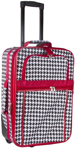 Don't get lost in a sea of black luggage at the airport! Stand out in style with this houndstooth print with red trim boarding case! This piece of lightweight luggage is great for jet setters and can be used for a quick, close by overnight staycation or for a weekend excursion to your favorite retreat. Its chic and fashionable design makes it a perfect choice for transporting gear for dance teams and cheer squads too! Easily glide through the TSA security checkpoint on inline skate wheels with your rolling suitcase for stress-free and efficient, stylish transport. This cute carry on features an interior zip compartment and elastic pocket to keep all your travel necessities organized. Never lose your boarding pass, ID, or other smaller items with two front exterior zipper compartments. This fabulous carry on is expandable just in case you need to return home with a few extra souvenirs.