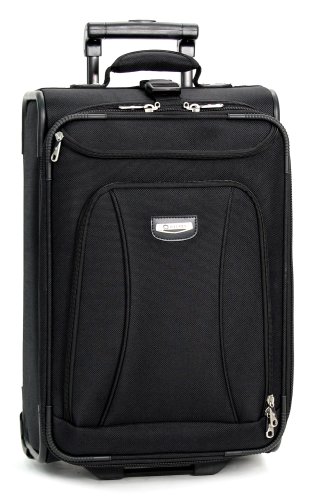 64074BK Features: -Top zippered ticket / accessory pocket.-PVC corner protectors.-Removable adjustable add-a-bag strap.-2 Expansion denoted by red zipper tab.-Upright interior / exterior.-Sewn-on skid bars.-Integrated ID tag.-Large zippered rear pocket.-PVC moisture bars / kick plate.-Easy-lift bottom carry handle / front stabilizer.-Extra high ABS wheel housings for curb and step protection.-Fully lined printed interior.-3 Elastic mesh pockets.-1 Full length zippered mesh pocket.-2 Quick-release nylon hold down straps.-Lightweight removable panel suite.-Lid mesh (zippered) pocket.-Universal cam buckle to hold any hanger from your closet.-Zippered lockable front pocket panel with gusseted wings for easier packing.-Padded wrinkle - free bar to protect hanging clothes.-Padded nylon side and top carry handles with double rivets for extra strength.-Dimensions 20.5" H x 14" W x 9" - 11" D. Construction: -Constructed of durable 1800 polyester with EVA foam backing.-Side bound construction.